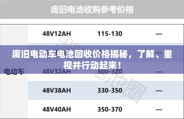 随着电动车的普及,废旧电动车电池的回收问题逐渐受到人们的关注,废旧电动车电池不仅含有重金属,还可能对环境造成污染,对其进行合理回收与利用显得尤为重要,废旧电动车电池回收价格是多少呢?本文将为您详细解析。